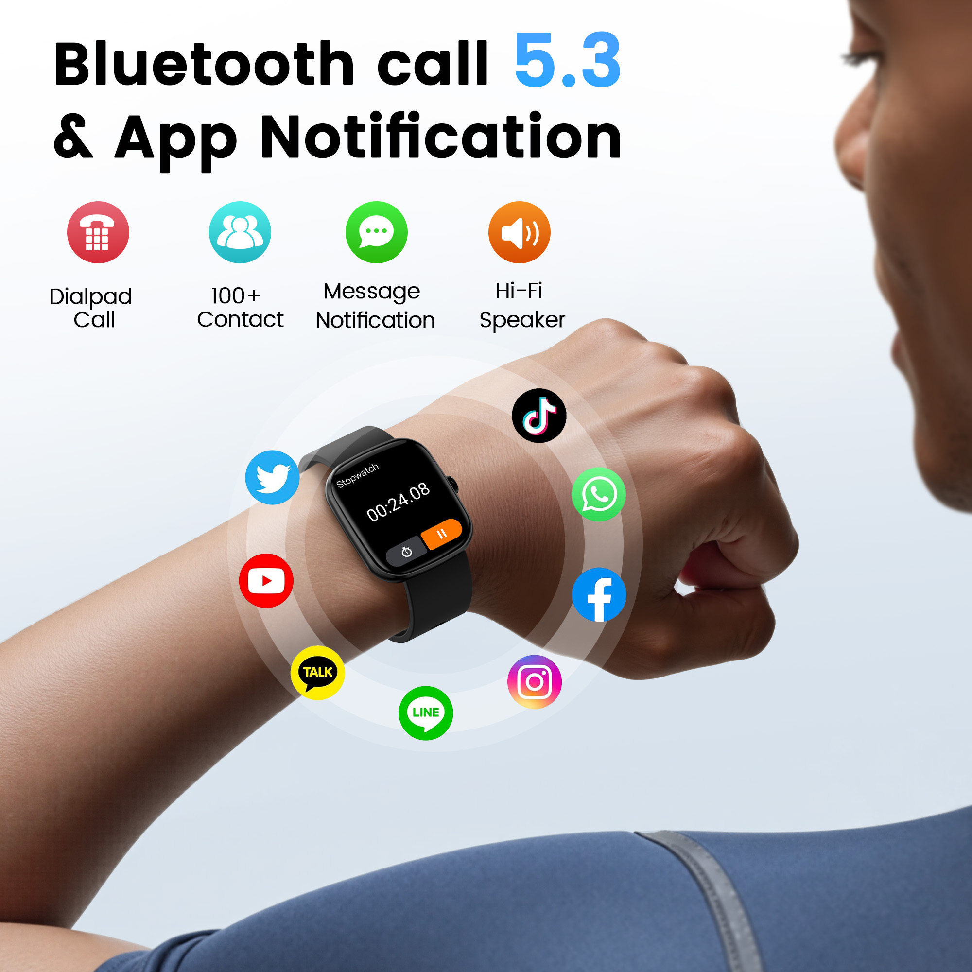 Bluetooth Connectivity for Calls and Messages: Compatible with both iOS and Android devices, this smartwatch connects seamlessly via Bluetooth, allowing you to make and receive calls directly from your wrist. No need to pull out your phone—stay connected and easily manage your calls. You can also view and respond to messages from popular apps like WhatsApp, Facebook, Instagram, and more, making sure you never miss an important notification